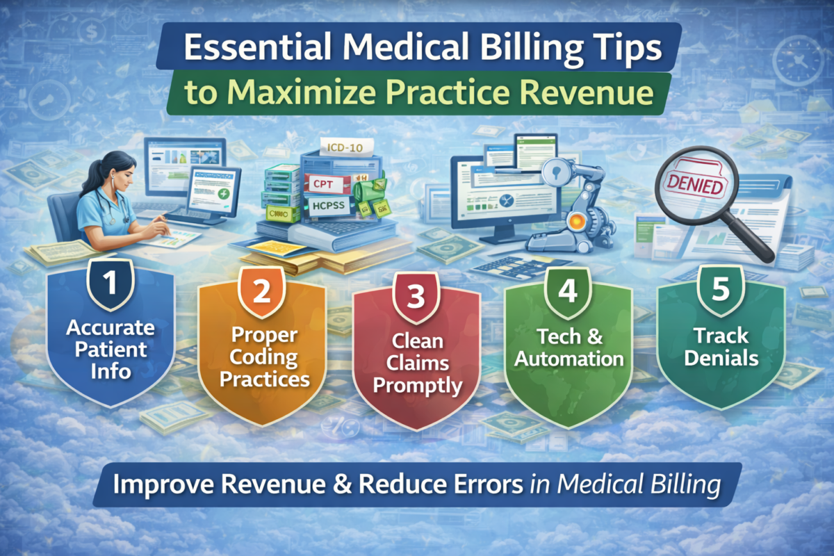 16 Mar Medical Billing Essential Medical Billing Tips to Maximize Practice Revenue March 16, 2026 By admin 0 comments Medical billing is more than just submitting claims — it’s a vital part of your practice’s... Continue reading